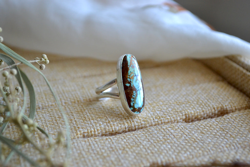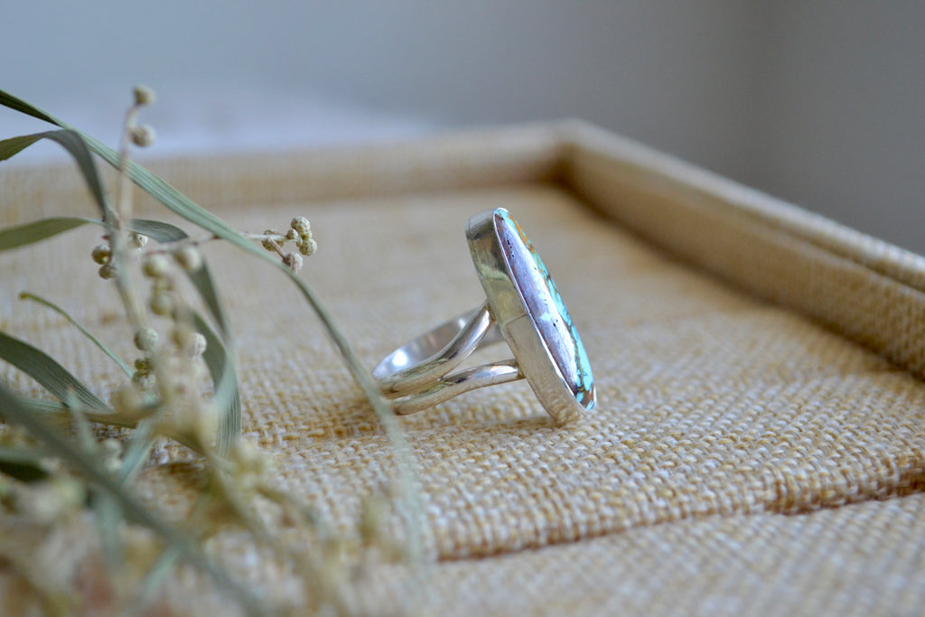 My #1 favorite piece from this collection, hands down. This Kingman stone is from their natural collection (rarer, & didn't need stabilizing), where they mined it and didn't have to do much other than polish it up. It's like that gorgeous girl in high school that doesn't wear makeup and roles out of bed looking majestic and effortlessly cool. This stone is her.. it's whatever, we all want her, or we all want to be her. In this case I want her! :)